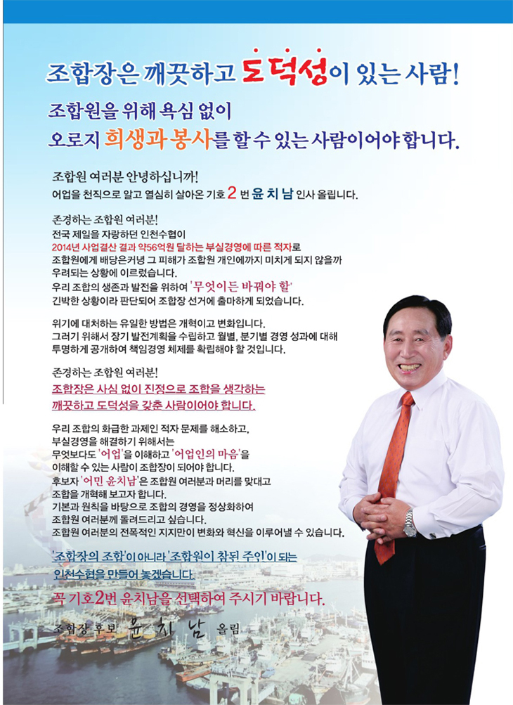 À±Ä¡³² Á¶ÇÕÀå Èĺ¸ ¼±°ÅÈ«º¸¹° (ÀÎõ¼ö»ê¾÷ Çùµ¿Á¶ÇÕ)